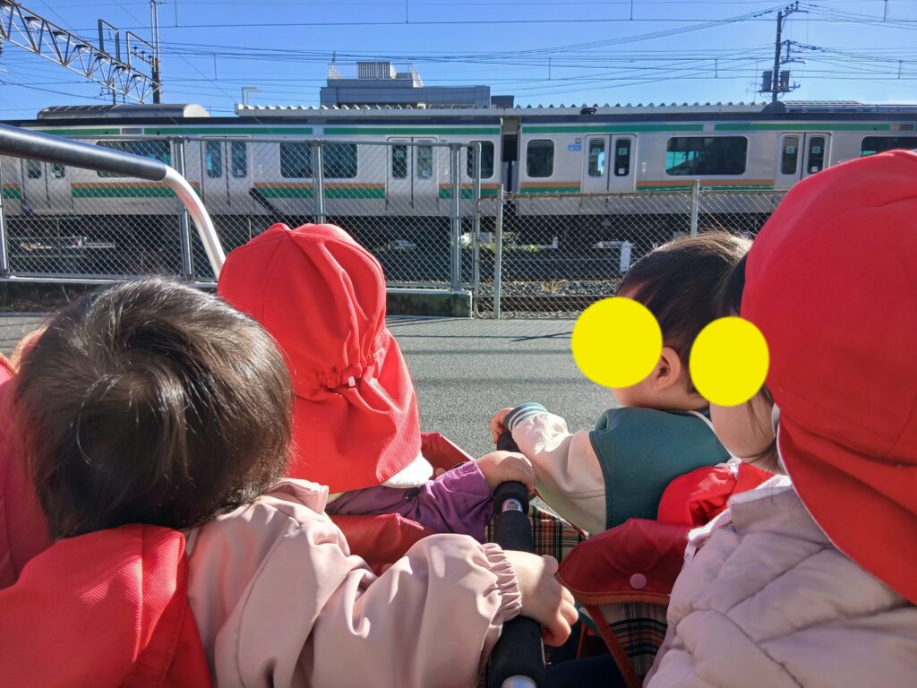 ガタンゴトンとすごい速さで走る電車に、目を丸くしていたくるみ組さん👀